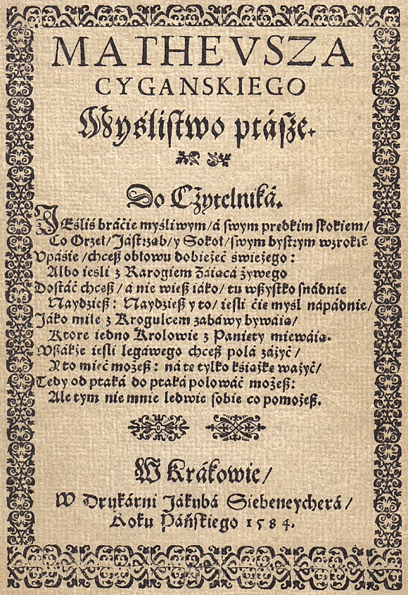 „Myślistwo Ptasze” - Cygański Mateusz, 1584r.